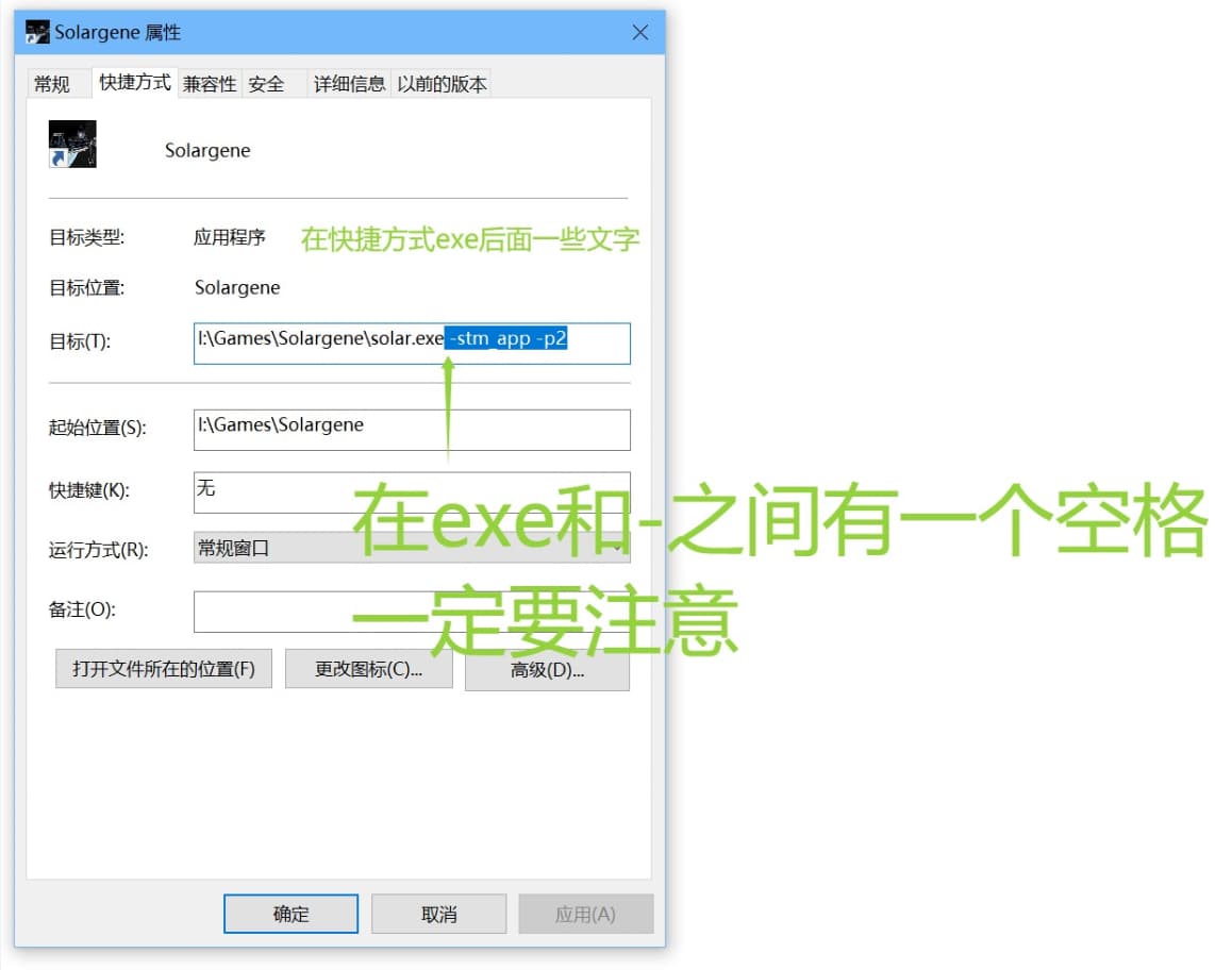 如出现闪退情况 请看图(点击看大图 有三张图)在快捷方式后面加上(先打空格在加)-stm_app -p2 然后用桌面的快捷方式进入游戏