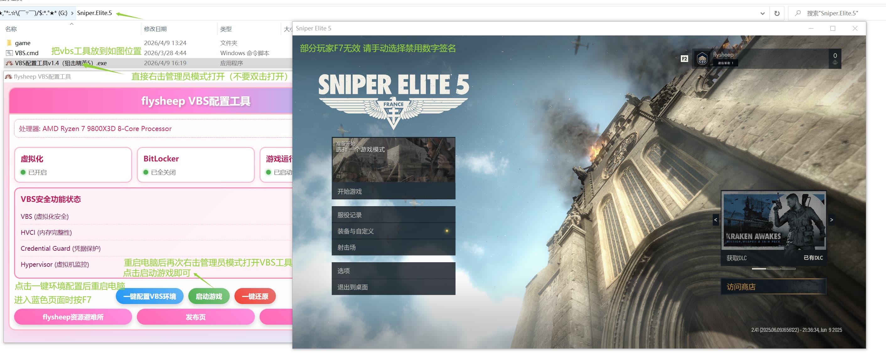 一键配置VBS环境已经开启了,但是打开游戏弹出对话框提示错误代码30007(如果禁用了驱动程序强制前面,Easy Anti-Cheat将无法运行),这该如何解决呢?谢谢,我是以管理员身份运行的Launcher文件夹里面的SniperElite5.exe,谢谢